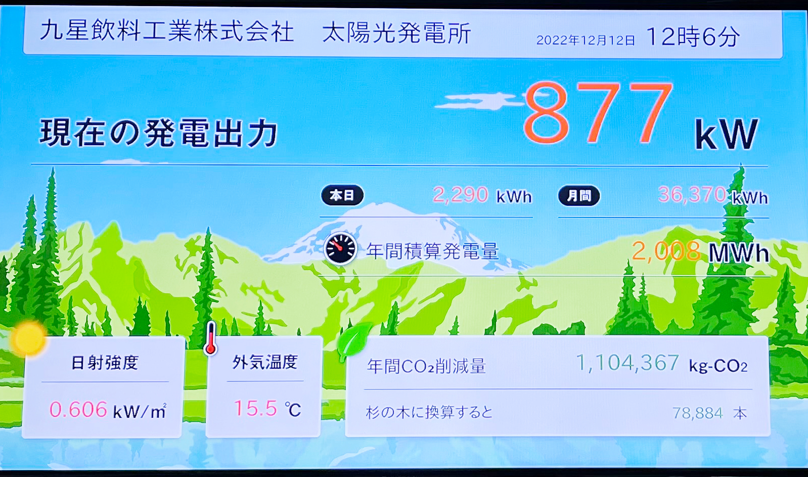 九星飲料工業株式会社では、太陽光発電など自然エネルギーの普及に継続的に取り組んでいます。