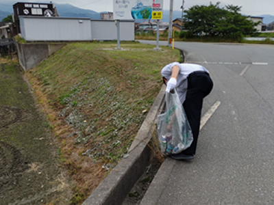 6月13日 社会貢献委員会のメンバーで、瑞梅寺川を含む工場周辺の清掃活動を行いました。