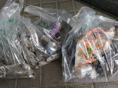 ゴミ袋約2袋(可燃ごみ・ペットボトル・缶飲料ボトルなど)分を収集いたしました。