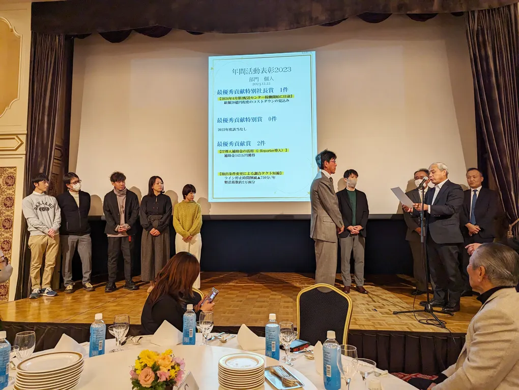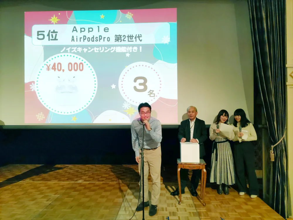 おいしい料理をいただきながら、年間活動表彰・新入社員紹介・大抽選会などを行いました。