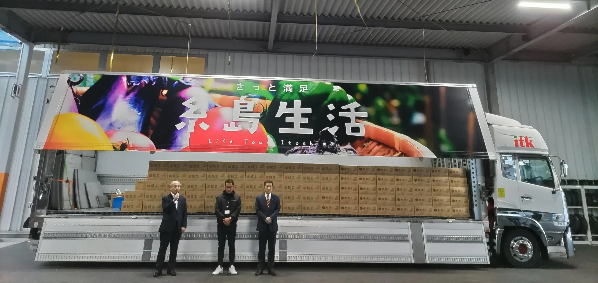 1月18日(木)月形市長、仲原社長、中原社長(イトキュー)がご参加され出発式を執り行いました。