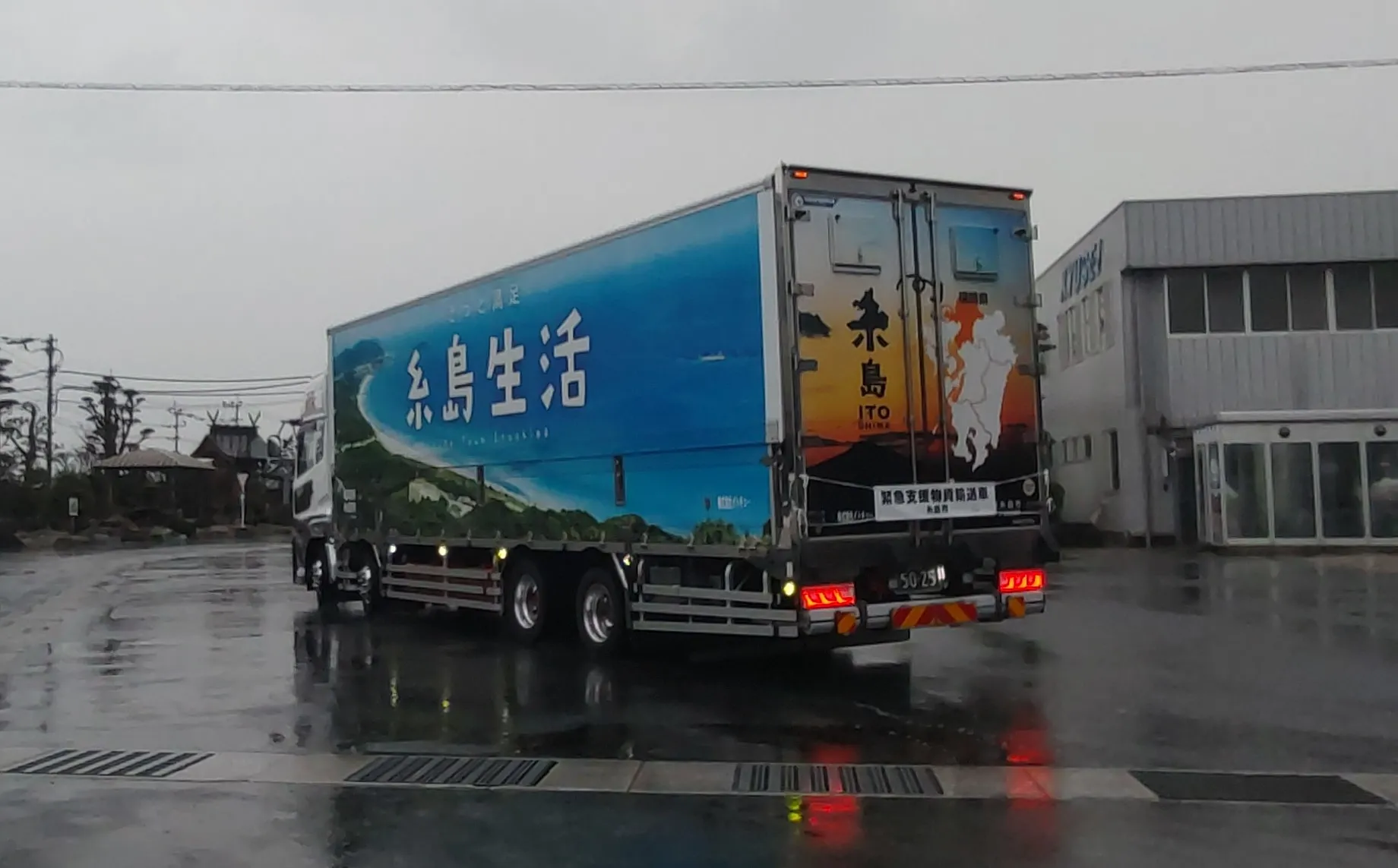 被災地の石川県七尾市へ緑茶400函、麦茶300函を積み込み出発しました。