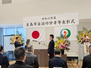 2024年度紫綬褒章、糸島市自治功労者賞特別功労者を受賞しました! 11月3日には月形市長より特別功労者の表彰を受けました。